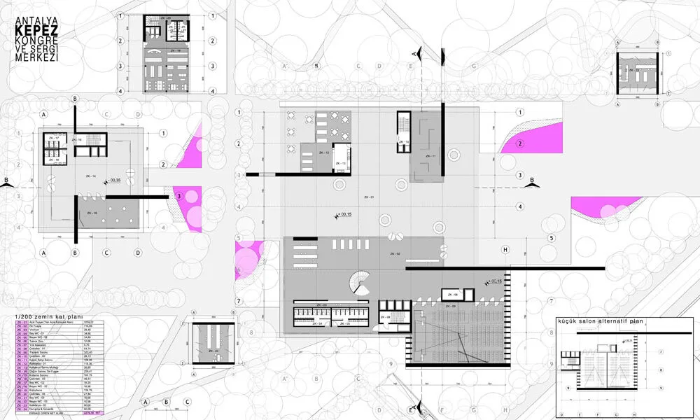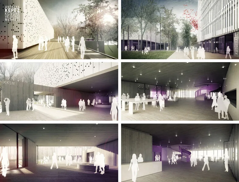 Designed for the Antalya Kepez Municipality, the building complex serves as a Congress Center and support units, thoughtfully accommodating 2,000 people within a campus characterized by its irregular geometry and majestic wide-trunked trees. Much like a forest where trees are scattered yet interconnected, the layout of this complex reflects a fragmented approach that echoes the natural formations of the site. The ancient trees act as guardians of the design, guiding the placement of the structures and allowing for clustered spatial voids that invite interaction and exploration.