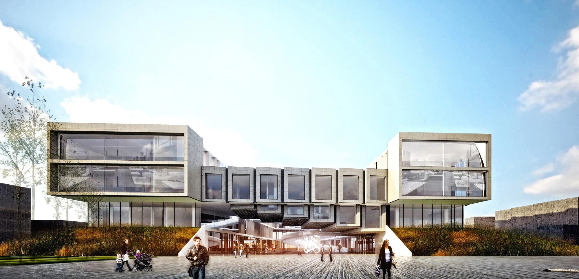 To make all these phenomena palpable, the intensive building program has been cleverly concealed within green mounds resembling the nearby tumuli. To ensure that the relevant public spaces become ingrained in the urban memory and are easily accessible, a "courtyard" has been created within the arrangement, directing the entrances of all spaces toward this openness. Thus, this element, designed in an integrated and fluid form with the ground, has alleviated the cumulative density of the program.