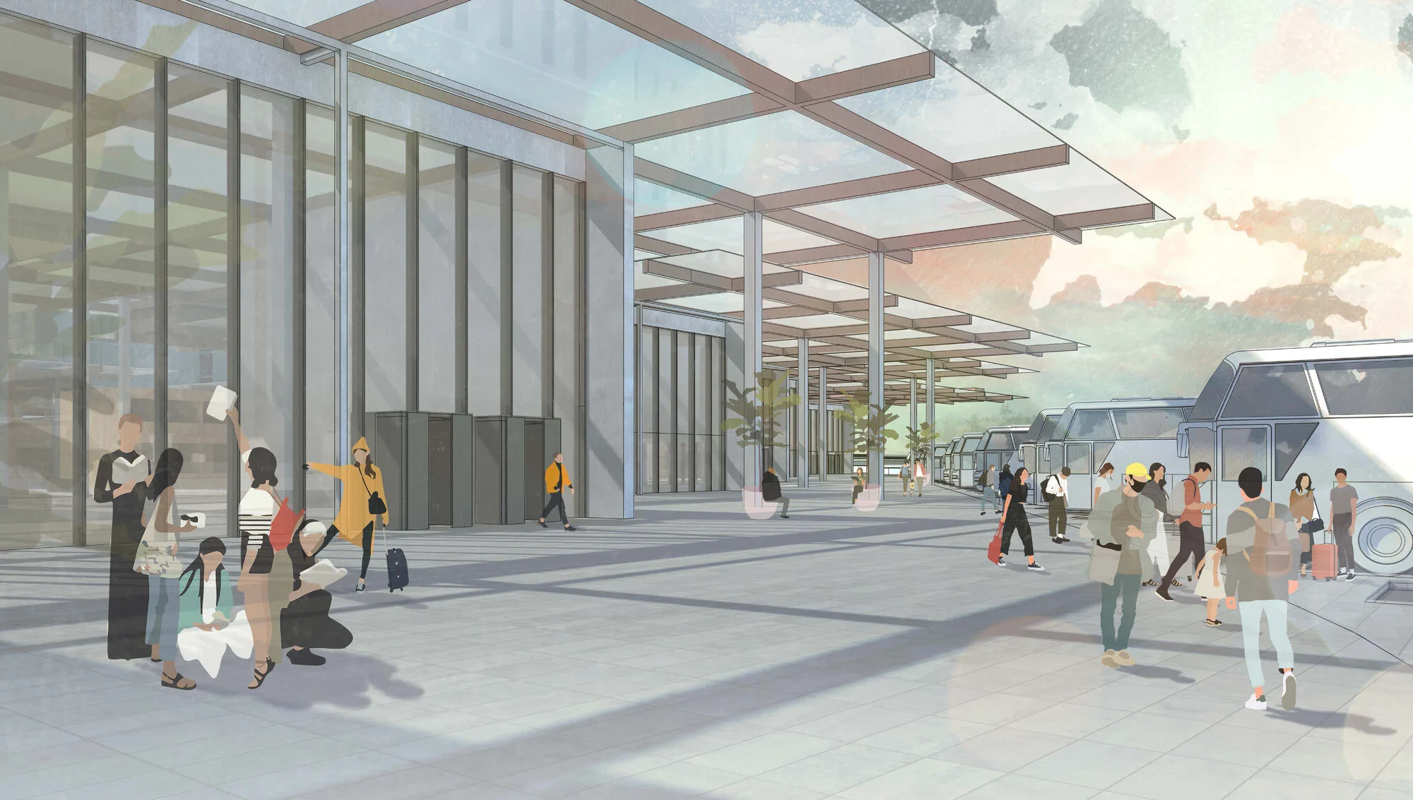 As a public structure, bus terminals face common challenges. Due to high circulation of both pedestrians and vehicles, non-permanent users, aside from bus company employees, rarely have opportunities to experience the space. The one-way, linear process of "Ticketing – Baggage Handling – Waiting – Transfer," completed in a short time frame (maximum 2–3 hours), limits the User-Space interaction. Consequently, users do not engage with the space or encounter elements that could allow personalization.