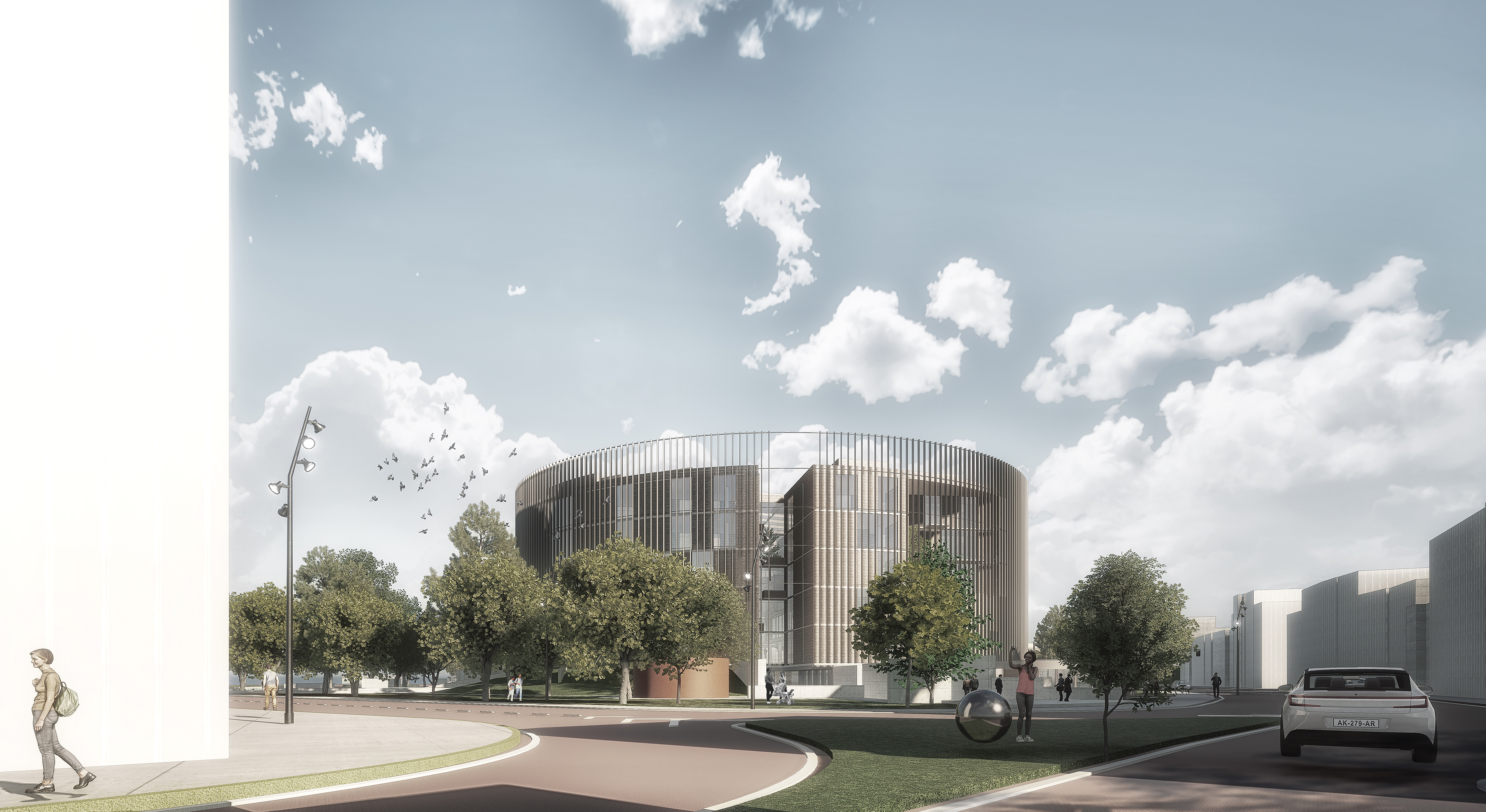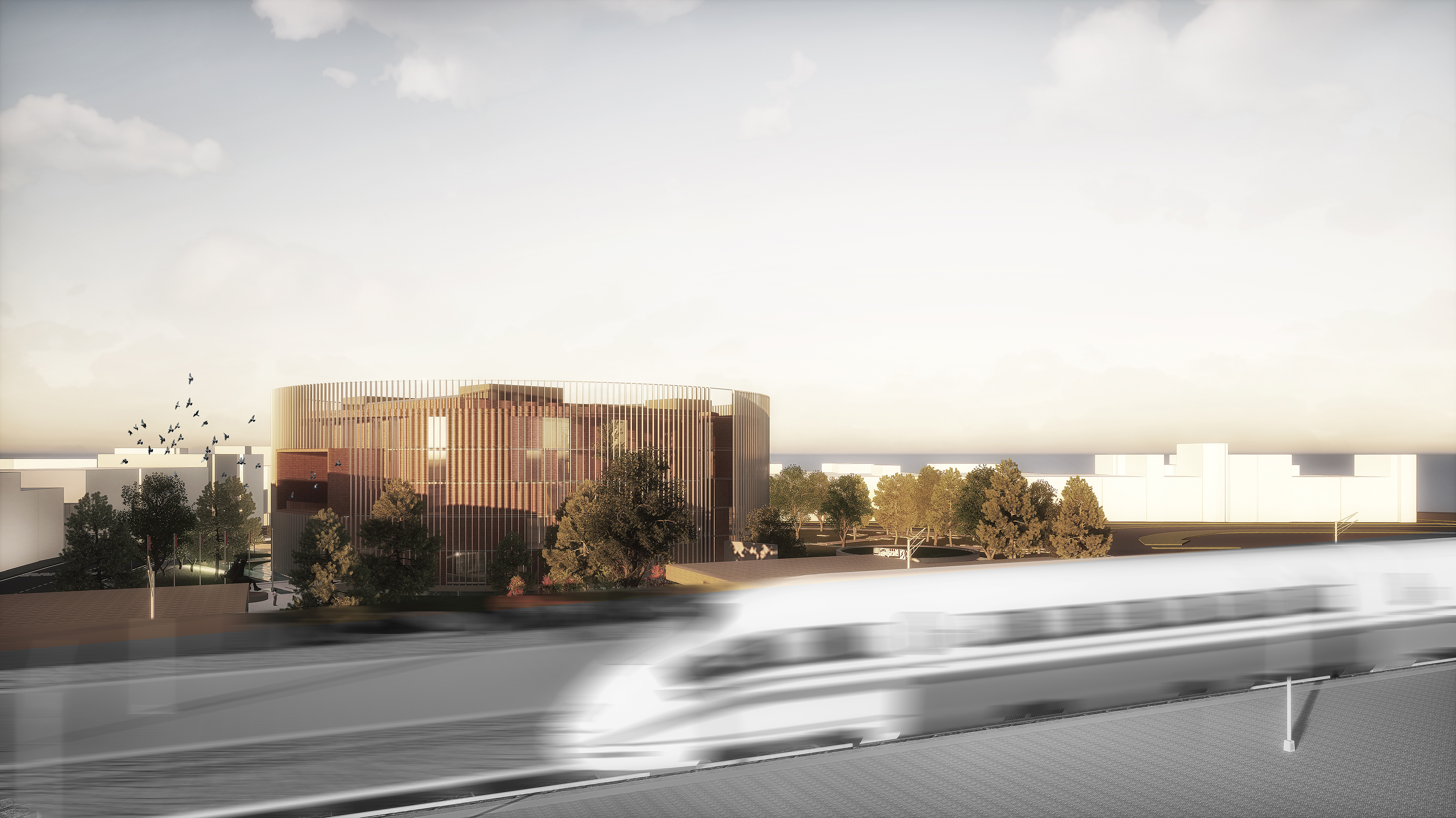 To foster unbroken pedestrian continuity, the ground level has been lowered to align with the floodplain elevation (the “Kret” level). This spatial calibration subtly reduces the building’s perceived mass, while enhancing the structure’s embeddedness within its landscape. The exposed intermediate façades are then covered with a “tumulus-like” topography — emphasizing an elegant and grounded architectural presence.