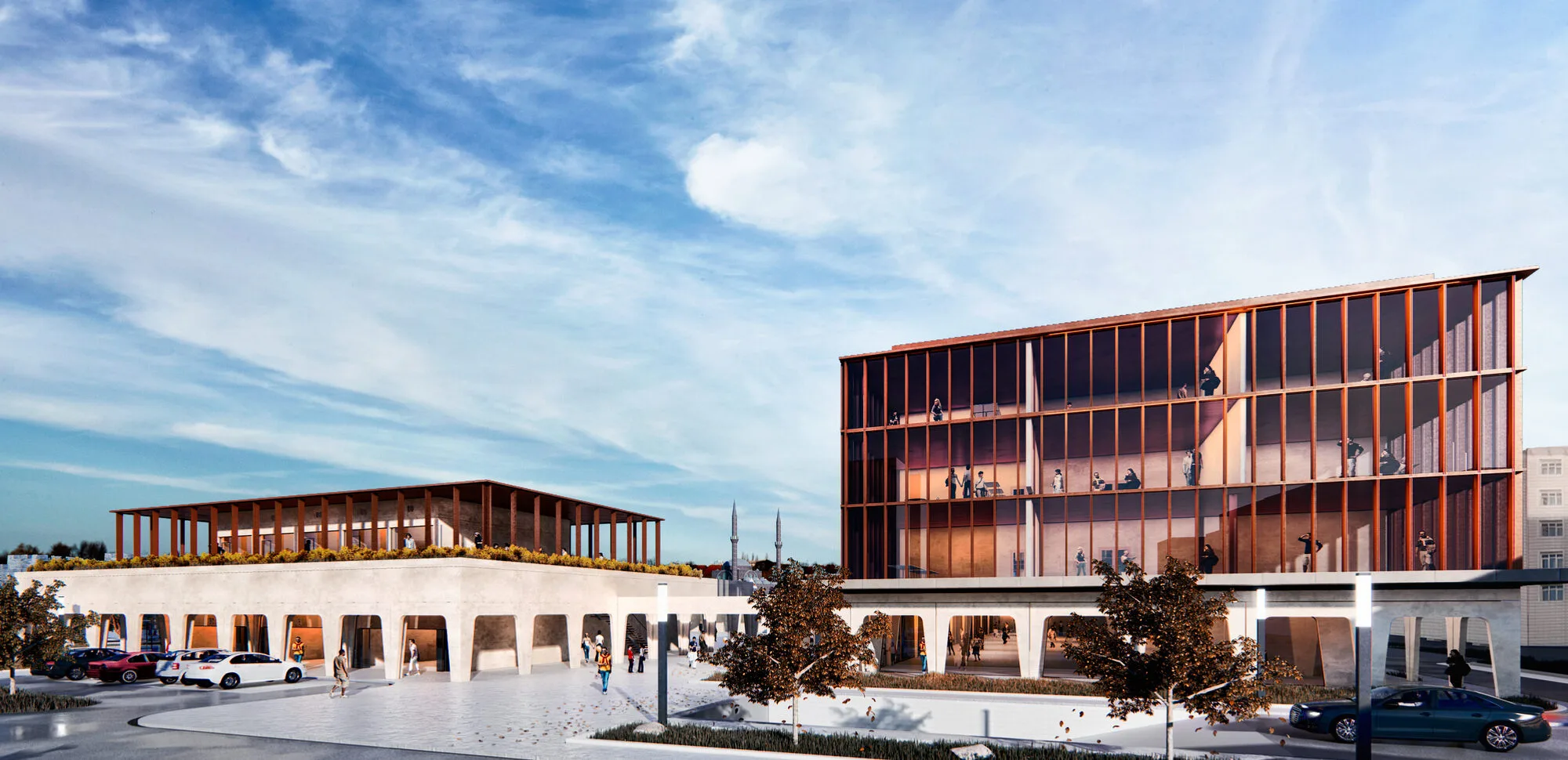 The design approach seeks to offer a flexible public space with various spatial options, responding to the daily needs of city users. Positioned in close proximity to high-density commercial areas, the project ensures that its layout allows for both indoor and outdoor usage, catering to different user profiles. The use of layers (such as courtyards) serves to distribute density evenly across the site. At ground level, the design incorporates a "Multipurpose Hall," "Library Units," "Workshops," "Meeting Rooms," "Cinema Halls," and administrative functions of the Government Building, all connected via courtyards. The Cultural Center spreads into the Square through these courtyards, while the Government Building presents as a unified mass facing the main courtyard. These courtyards allow for the separation of functions while also ensuring their connection. The arcaded facades not only enhance climate control but also provide flexibility for semi-open and open spaces. The interlocking courtyards enable passive climate regulation and foster a symbiotic relationship between the Government Building and the Cultural Center.