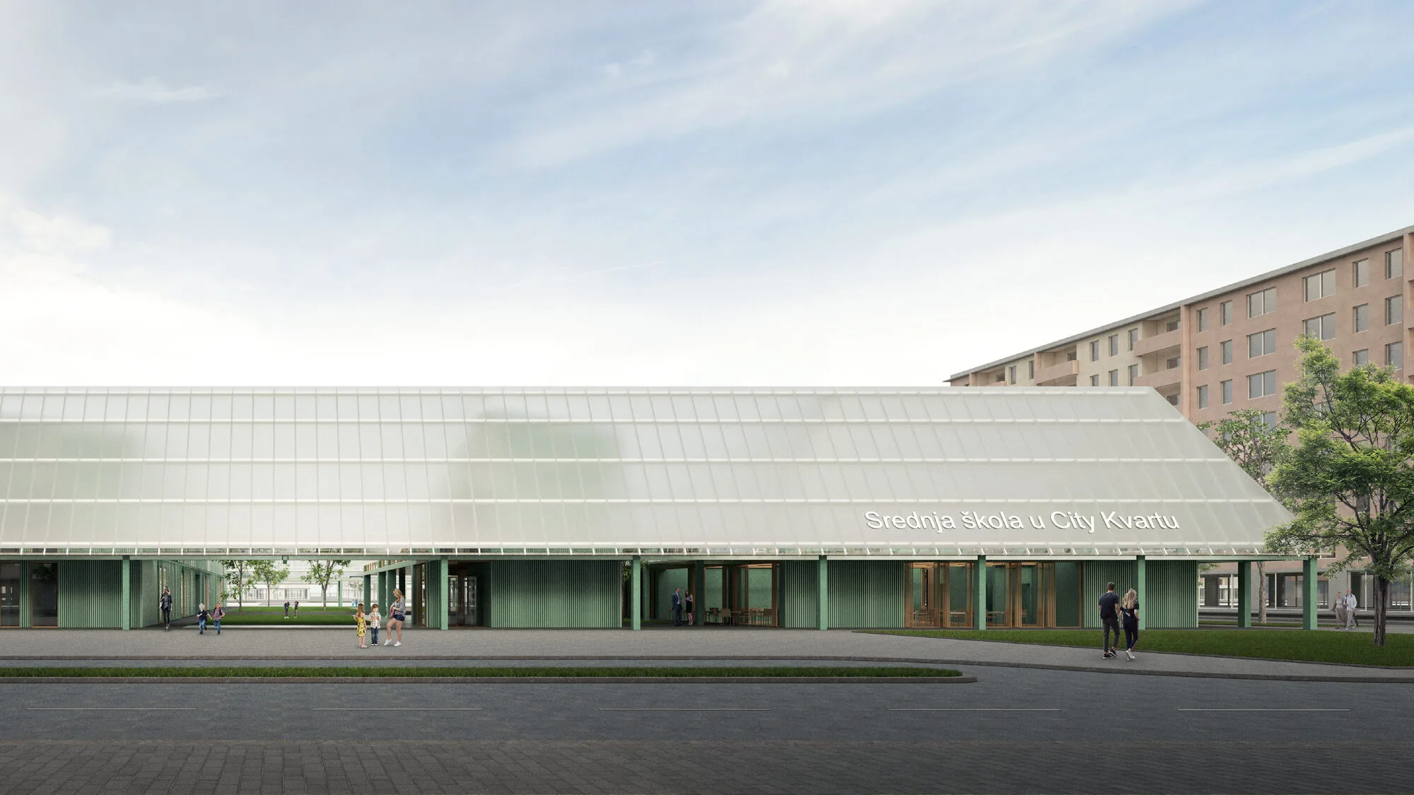 The design area is located in the northwest of the city of “Kvart”, on the route of the urban development extension. The area, together with its immediate surroundings, is located on a pattern with gridal layout and orthogonal layout. Almost all of the adjacent building groups are segments of mostly rectangular complexes with an effort to complete the macro form on an island basis. For this reason, an urbanism trend that can be read quickly in the urban pattern also constitutes an important reference for possible school building parts. In this respect, the extensional tendency of design and the reflex of texture completion in the built environment actually push the designer actor to a single conclusion. In particular, the almost "non-directional" and "unfocused" boundary line of the building block, where the design area is also located, causes the possible structure or building group to move with the motivation to continue this feature in the superstructure.