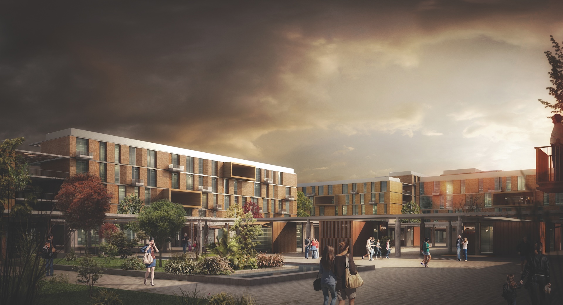 The central square (knot point) is within walking distance of religious, cultural, educational, and sports facilities. Kiosks located along the recreational river promenade connect the two regions, and proposed bridges further enhance accessibility.