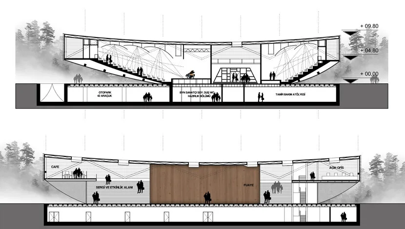 The Platform Square proposal aims to reestablish the area as a square, free from chaos, through a contemporary and minimalist interpretation. Furthermore, it seeks to offer a new perspective on the conventional notion of a one-dimensional square. The Platform Square extends east-west while organizing the necessary spaces for the area at different elevation levels. At the intersection point of the square with Tayyare Park, the social units required for the area are created through surface movements of the platform. In consideration of vehicle densities surrounding the area, the surface movement on the northeast side of the platform square organizes entrances to an underground parking facility. Additionally, public units to be preserved within the area are emphasized through surface movements, transforming the space into a meeting point for residents.