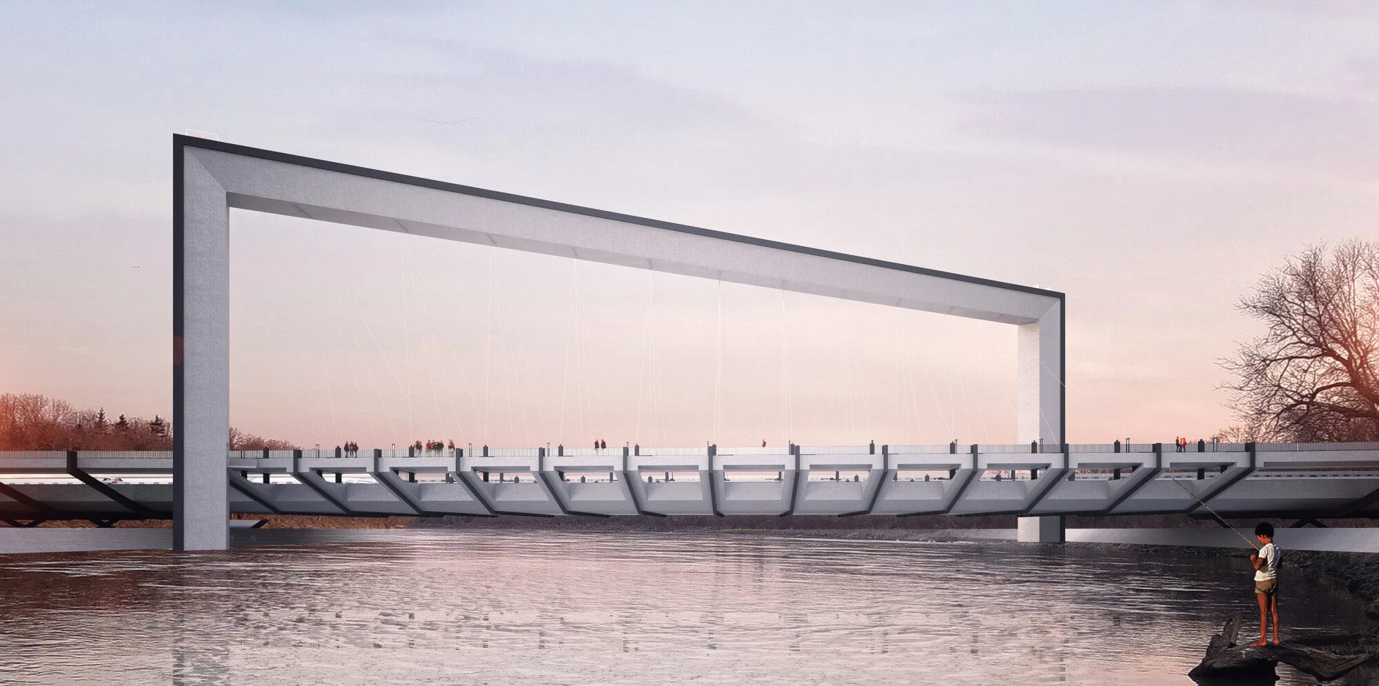 At the core of the structure lies a composite load-bearing framework constructed from high-performance concrete and steel methodologies, creating an evocative architectural identity. This framework not only delineates the vistas but also accommodates the bridge deck, directing the gaze of drivers and pedestrians toward intentionally framed focal points along the horizon. The perceptual frame is strategically positioned for easy recognition by both the "City Center" and the "University," further enhancing the user experience. The upper arch of the frame provides panoramic views, thereby inviting users into the structure.
